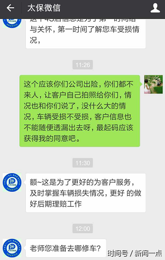 随后王先生又在微信上质疑太平洋保险的工作人员,为什么把王先生的信息给4S店,保险公司解释说:“把信息给4S店是为了第一时间给与关怀,了解车辆受损情况”!