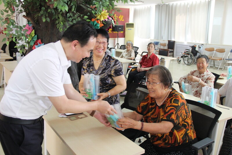 捐赠仪式后,特别安排了公益健康讲座。东营博爱医院的专业健康管理师用通俗易懂的语言,为长者们讲解了老年人常见健康问题的预防与护理知识,并现场演示了简单实用的保健操。讲座内容贴近老人需求,现场互动热烈,老人们纷纷表示受益匪浅。崔书记为老人们送去夏日清凉礼包对老人表示关怀慰问。“谢谢你们,希望你们常来!”90多岁的奶奶温情环抱着工作人员说道。