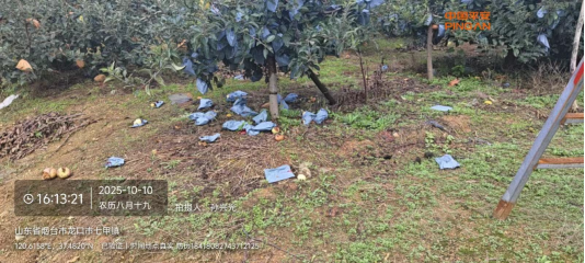 10月10日白天,龙口市发生暴雨天气,平安产险龙口支公司主动对接气象局,核实暴雨天气属实后,前往承保地进行查勘,发现3户果园内均出现落果情况,对果树产量产生影响,触发保险理赔标准,龙口市支公司已对3户客户完成报案,并初步核算损失,同时平安产险龙口支公司联系农业技术专家对果园进行测产。