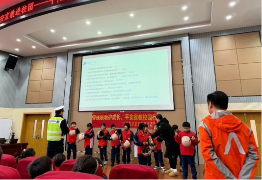 活动现场,交警结合小学生的认知特点,通过趣味问答、现场演示等形式,讲解了电动自行车骑行年龄限制、佩戴安全头盔的重要性、路口通行规则等交通安全知识。学生们积极参与各项互动环节,现场氛围热烈。此外,平安产险的志愿者还为学生们发放了安全头盔、交警小熊等小礼品,手把手教孩子们正确佩戴安全头盔的方法,让孩子们直观感受到交通安全防护的要点。