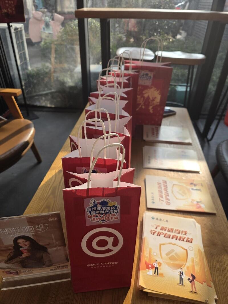 在济宁市中心城区,装载着特殊“知识外卖”的骑手们穿梭于大街小巷。泰康人寿与库迪咖啡、瑞幸咖啡等品牌合作,精心设计防水防油的“金融消保便利贴”,将“警惕保本高息话术”、“个人信息保护三要素”等实用知识随餐配送。“我们特别选用荧光配色和加大字体,确保消费者在用餐时一眼就能注意到关键提示。”泰康人寿济宁中支消保岗盛菲介绍。这种“美食+知识”的创意组合,通过外卖网络,精准触达都市年轻消费群体。