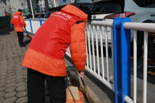 同为一抹橙 温暖一座城 山东产险党员志愿者服务社区清洁