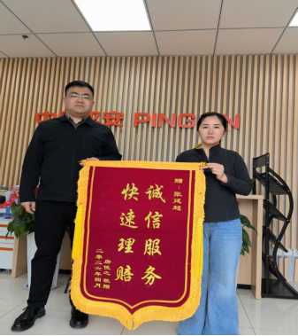 近日,房女士专程将一面印有“诚信服务,快速理赔”的锦旗送到平安产险沾化支公司,对张廷超专业、高效、贴心的服务表示由衷的感谢,这面锦旗不仅是客户的认可,更是对其坚守服务初心、践行诚信理念的最好褒奖。