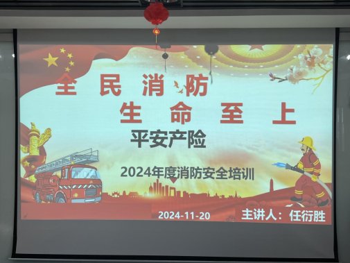 山东平安产险烟台中支于11月20日上午8点30分开展“全民消防、生命至上”主题消防安全知识培训与演练,学习基础消防知识及如何正确使用