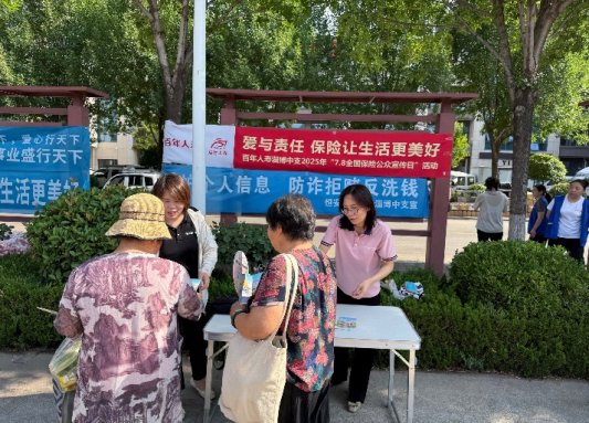 以“爱和责任 保险让生活更美好”为主题的第十三个“7 8全国保险公众宣传日”活动正火热开展中。百年人寿淄博中心支公司积极响应国家