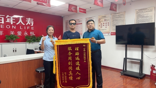 2025年8月26日,客户X先生委托保单销售人员,来到百年人寿聊城中支柜面,送上一面“理赔迅速暖人心 服务周到传真情”的锦旗,对公司在其罹患重大疾病时快速理赔兑现承诺表示感谢。