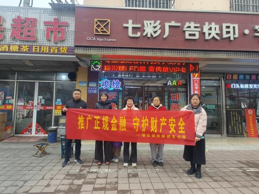 金融宣传进商铺 安全守护“钱袋子”——瑞众保险山东分公司枣庄中支在薛城区永福路商圈开展“推广正规金融”知识普及活动