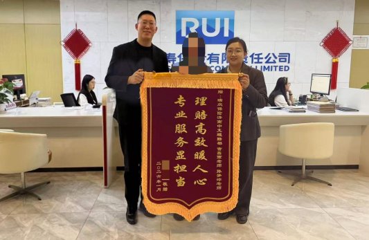 近日,瑞众保险济南中支收到客户送来的锦旗,锦旗书写“理赔高效暖人心,专业服务显担当”,字里行间满是公司暖心赔付与客户真挚谢意的