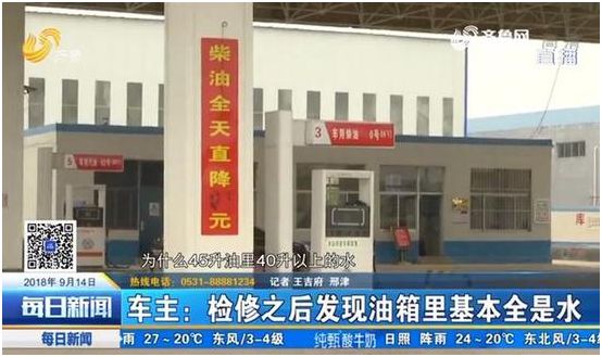 山东万通石化加油站油里有水?车主加满一箱油基本全是水