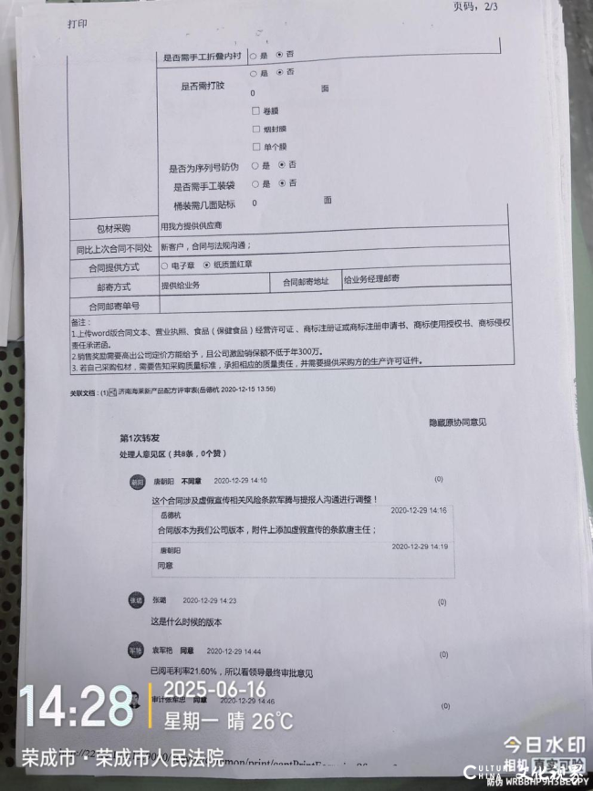 在合同评审表中显示,百合生物股份副总经理王文通、审计张军忠、股东岳德杭等皆以审核同意。