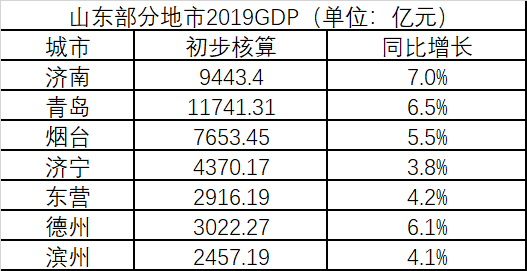 目前济南、青岛、烟台、济宁、德州、滨州、东营已陆续公布2019年全市生产总指初步核算数据。鲁网记者梳理发现,济南以7.0%的增速在全省领跑,而青岛以11741.31亿元的成绩“总分”第一。