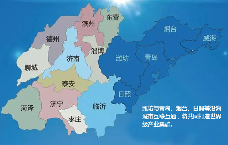 5月19日,以“山海深呼吸·胶东健康游”为主题的胶东经济圈文化旅游合作联盟成立大会暨2020“5·19”中国旅游日主题活动将在青岛市隆重召开,届时,青岛、烟台、潍坊、日照、威海五市领导将共同见证这一盛会,揭开“文化和旅游一体化高质量发展”的神秘面纱,昭示着胶东经济圈一体化发展推进已初结硕果。 早在5月7日上午,山东省便以六地视频连线的方式召开胶东经济圈一体化发展工作推进会议,省委常委、常务副省长王书坚出席会议并讲话,省委常委、青岛市委书记王清宪主持会议;5月9日,青岛、潍坊两市就一体化发展暨青岛片区潍坊联动创新区召开座谈,共商发展大计,潍坊市委书记、市人大常委会主任惠新安,市委副书记、市长田庆盈率队赴青岛出席,并就加快一体化发展、加强项目推进、企业合作等方面进行洽谈对接。 潍水潍坊,匠心匠造。自秦朝起,潍坊便为京东古道之重要枢纽,更是历史上有名的手工业城市。因此,清乾隆年间获有“南苏州、北潍县”之美誉。地处黄河三角洲高效生态经济区、山东半岛蓝色经济区两大国家战略经济区交汇处,恰恰是山东内陆城市通往半岛地区的咽喉,因而这片“腹地”以极其重要的战略位置、得天独厚的资源优势、稳中求进的发展趋势,被推选为中国最具投资潜力和发展活力的新兴经济强市之一。 胶东经济圈一体化战略的部署,再次为所处山东半岛城市群中心的这片“腹地”赋予了新的灵魂与历史使命。向前走,紧跟全省经济发展“龙头”城市青岛步伐,对标学习、高速融入,与烟台、日照、威海等沿海城市互联互通,将共同打造世界级产业集群;回转身,距大济南经济圈仅一步之遥,可作为两大经济圈重要枢纽,迅速打通经济命脉、相辅相成,将沿海城市与内陆城市资源完美输入、输出,继而化身为新的经济发展“急先锋”。
