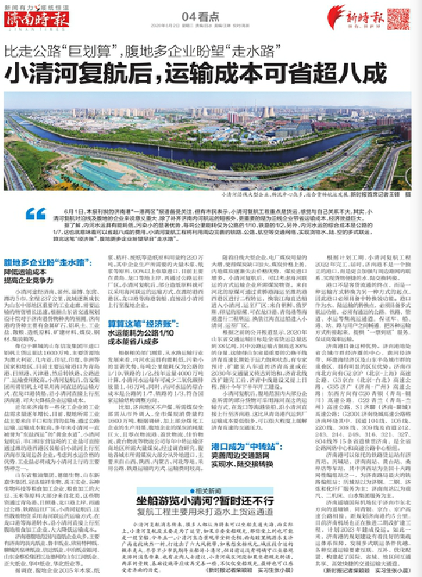 6月1日,爱济南发布的济南港“一港两区”报道备受关注(此前报道《主城港区和章丘港区!济南港“一港两区”一期年内开建,小清河将这样行船》),但有市民表示,小清河复航工程重点是货运,感觉与自己关系不大。其实,小清河复航对沿线及腹地的企业来说意义重大,除了补齐济南内河航运的短板外,更重要的是为沿线企业节省运输成本,经济效益巨大。
