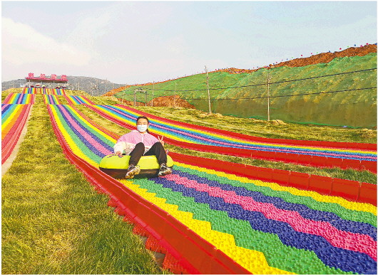 □记者王浩奇报道 大束镇依托好生态发展乡村旅游,图为鸿山上建起的滑草项目。
