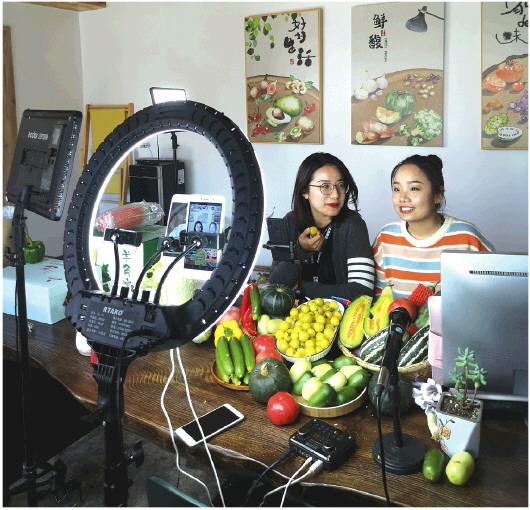 □记者石如宽宋学宝报道 7月6日,寨里村两名主播在直播销售蔬菜。