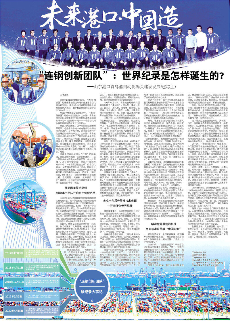 这趟学习考察没有学到什么“真经”,却激发了整个团队的志气。“核心技术是花钱买不来、市场换不到的,必须自主创新。”张连钢和同事们最终做出决断:依靠身后青岛港几十年集装箱事业的发展积淀和港口科技不断进步的实力积累,自主创新建设世界一流的自动化码头。他们坚信:全自动化码头不是西方人的专属,那些“云端”高科技并非高不可攀,他们能做到的,中国人也一样能做到,而且做得更好!