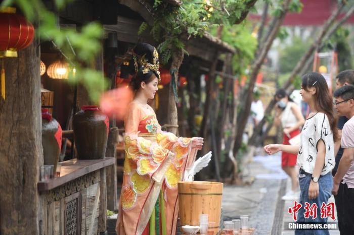 资料图:游客游览西安宋城演艺王国景区。杨晨 摄