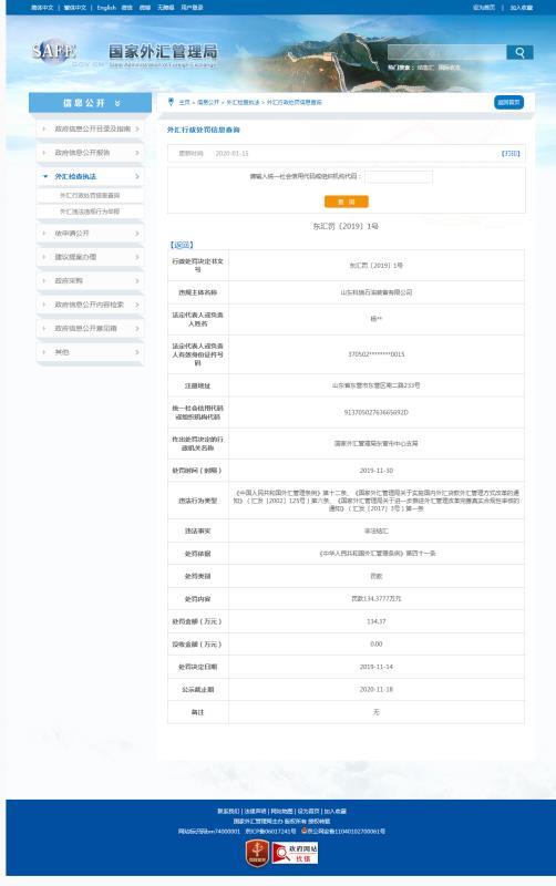 为了核实撤稿函中反映的情况,记者今天再次登录国家外汇管理局官方网站进行查看,东汇罚〔2019〕1号行政处罚决定书依然存在。记者从处罚信息中进一步了解到,该处罚决定日期为2019年11月14日,公示截止日期为2020年11月18日。
