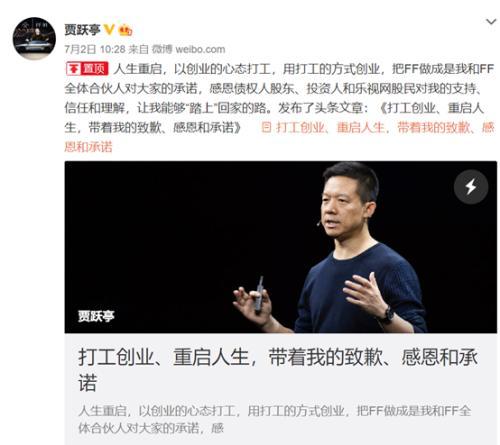 7月2日,贾跃亭发表的微博文章。