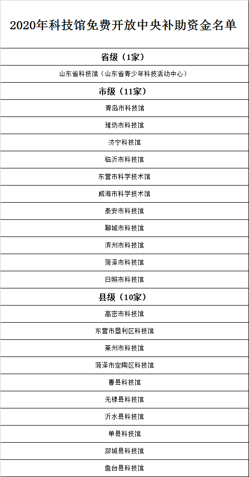 公告显示,近日,山东财政下达补助资金2907万元,加上前期已下达的2515万元,2020年累计安排5422万元中央补助资金,大力支持全省科技馆向公众免费开放。资金总额比2019年增加1830万元,增长51%,总量居全国首位。目前,全省免费开放科技馆总数达到22家。