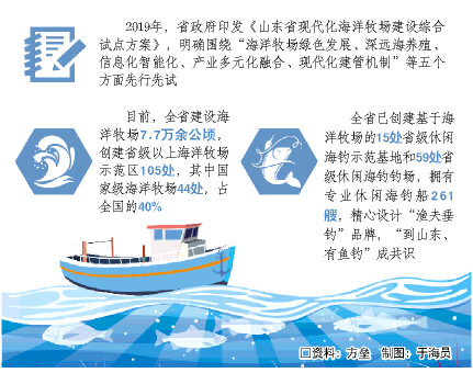 越来越多的海洋牧场从单纯养鱼延伸到放鱼、钓鱼、赏鱼、品鱼、识鱼、加工鱼、售卖鱼一条龙,“一条鱼”产生了“多条鱼”的价值。7月10日,全国首座大型智能化海洋牧场综合体平台“耕海1号”正式投运。作为烟台市十大海洋牧场示范项目,“耕海1号”将实现渔业养殖、休闲渔业、科学研究、科普教育、海洋文旅等跨界融合。目前,全省已创建基于海洋牧场的15处省级休闲海钓示范基地和59处省级休闲海钓钓场,拥有专业休闲海钓船261艘,成为我省海洋旅游业发展的一道风景线。
