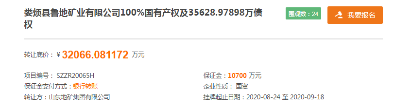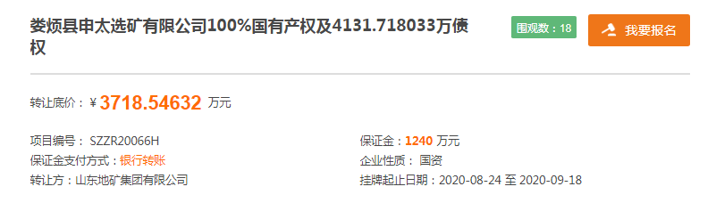 据悉,此次山东地矿将以3718.55万元转让所持娄烦县申太选矿有限公司(以下简称“申太选矿”)100%国有产权及4131.72万债权,以3.21亿元转让娄烦县鲁地矿业有限公司(以下简称“鲁地矿业”)100%国有产权及3.56亿债权。值得注意的是,除转让的债权外,本次申太选矿和鲁地矿业100%国有产权的转让底价都分别为0.9元。