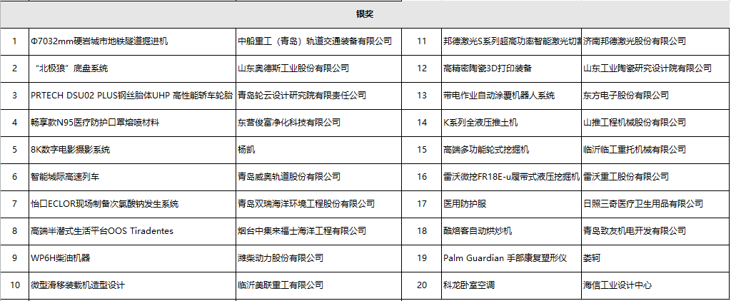 山东省第三届“省长杯”工业设计大赛银奖名单