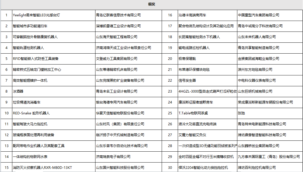 山东省第三届“省长杯”工业设计大赛铜奖名单