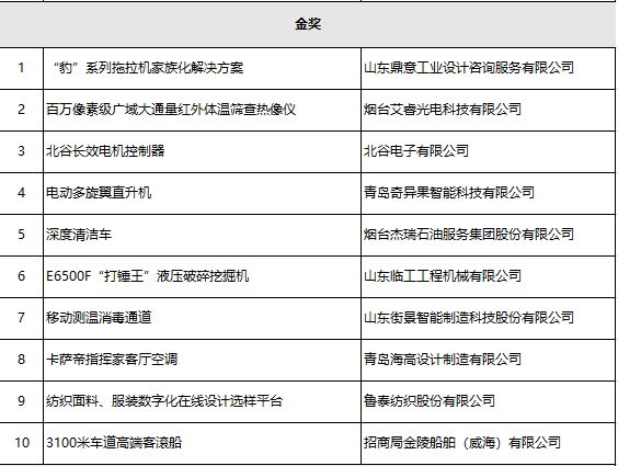 山东省第三届“省长杯”工业设计大赛金奖名单