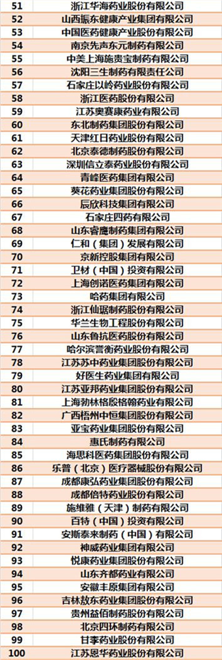 值得注意的是,在本次榜单中,前50名企业共有7家,与去年相比,新增绿叶投资集团有限公司和山东新华制药股份有限公司2家企业。