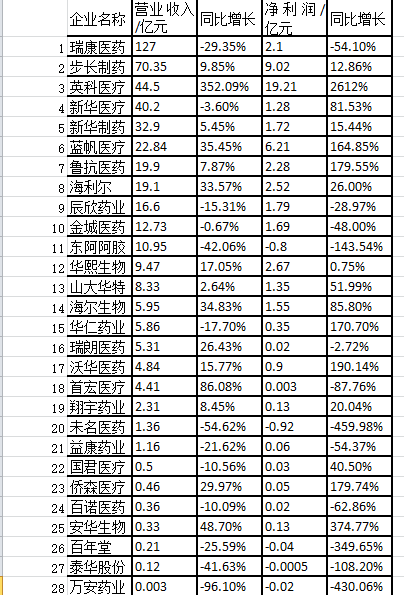 在营收方面,瑞康医药、步长制药、英科医疗、新华医疗、新华制药及蓝帆医疗6家企业营收超20亿元,其中瑞康医药营收高达127亿元,也是山东唯一一家营收过百亿的药企。从营收变动来看,英科医疗以352.09%营收增长高居榜首,也是是山东唯一一家营收增长超过100%的药企,首宏医疗以86.08%营收增长位居第二,但首宏医疗归母净利润却同比下滑87.76%,安华生物、蓝帆医疗及海尔生物营收增长分别为48.70%、35.45%、34.83%,位列三、四、五名。记者徐英淦 实习记者徐文轩