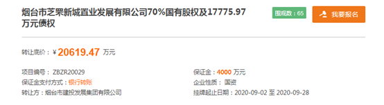 值得注意的是,今年1月时,烟台建投曾在山东产权交易中心发布过转让信息,当时转让价未定,最后因转让时间到期撤牌。在本次转让中,该项目挂牌价为2.06亿元,其中标的企业70%国有股权挂牌价2843.5万元,转让方享有的对标的企业债权挂牌价1.78亿元。