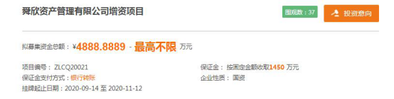 昨日,舜欣资产管理有限公司(以下简称“舜欣资产”)在山东产权交易中心发布公告称,欲公开引进2家战略投资者,募集至少4888.89万元资金用于不良资产处置等领域业务拓展。