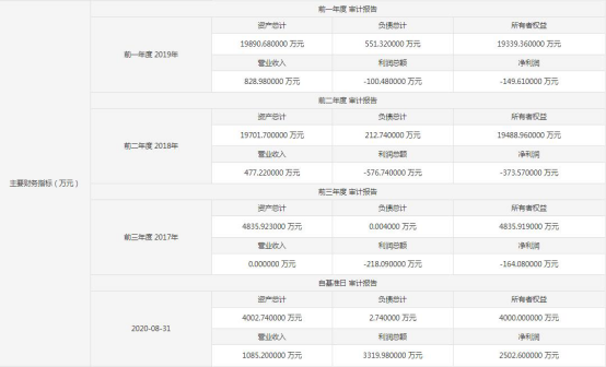 据其财务数据显示,截至8月底,标的企业营业收入1085.20万元,净利润盈利2502.60万元,资产总计4002.74万元,负债总计2.74万元。值得注意的是,与前几年相比,标的企业净利润和营业收入有所上涨,负债总额有所下跌。