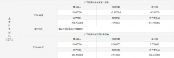 另据公司财务数据显示,标的企业截至今年6月底,资产总额达309.28万元,负债总额2.51万元,所有者权益为306.77万元。而其营业收入及净利润均为零。值得注意的是,从2018年起,标的企业营业收入就一直为0。记者徐英淦 实习记者吴奕萱