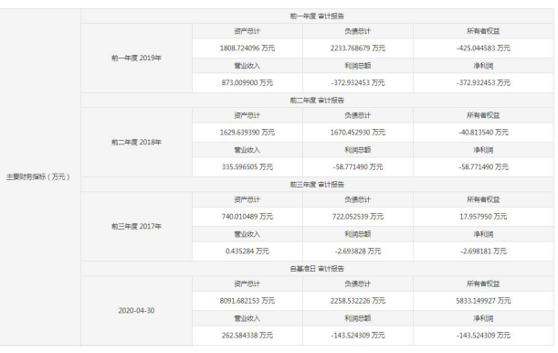 据其财务数据了解,标的企业目前处于营业状态,截至今年4月底,营业收入为262.58万元,净利润亏损143.52万元,资产总计8091.68万元,负债总计2258.53万元。与2019相比,该企业资产总计上涨6282.96万元,利润亏损减少了229.41万元。