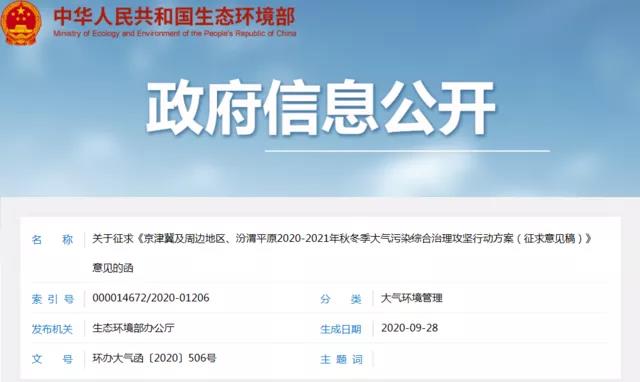 近日,生态环境部印发了关于征求《京津冀及周边地区、汾渭平原2020-2021年秋冬季大气污染综合治理攻坚行动方案(征求意见稿)》意见的函。涉及39个行业。方案明确要求,对各类污染物不能稳定达标排放或未达到排污 许可管理要求的企业,不纳入绩效分级管理范畴(但应纳入应急减排清单),在重污染天气应急响应期间采取停产或最严级别限产措施,以生产线计。 明确要求:全面加强钢铁、建材、有色、 焦化、铸造等重点行业无组织排放治理,生产工艺产尘点(装置) 采取密闭、封闭或设置集气罩等措施,粉状物料等采用密闭、封闭等方式储存和输送,2020年12月底前,各省(市)完成一轮无组织排放排查整治。