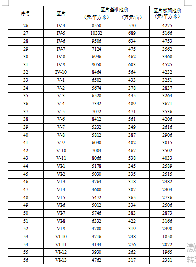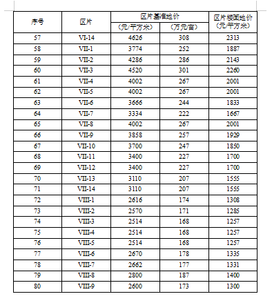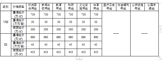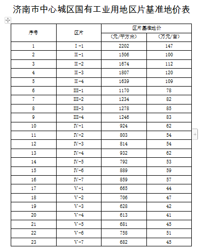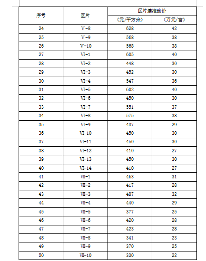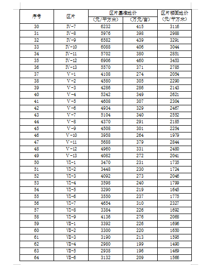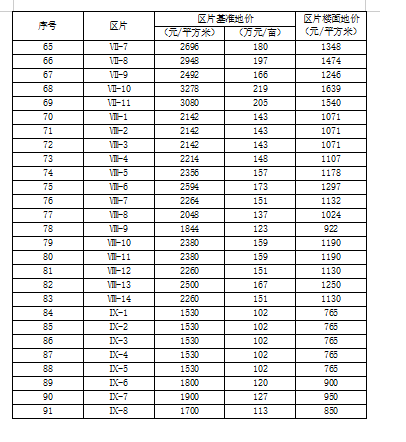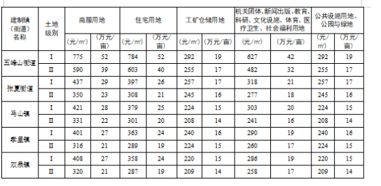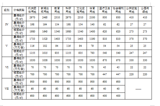 城区工业用地在新基准地价表中被分为7级,基准地价从2202元到411元/平方米不等。按此前的基准地价是2100元到322元/平方米不等,工业用地变化不大。