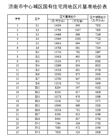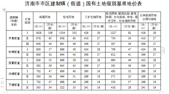 济南市中心城区范围又扩大了!城区住宅用地一、二、三级基准地价提高了一倍多。