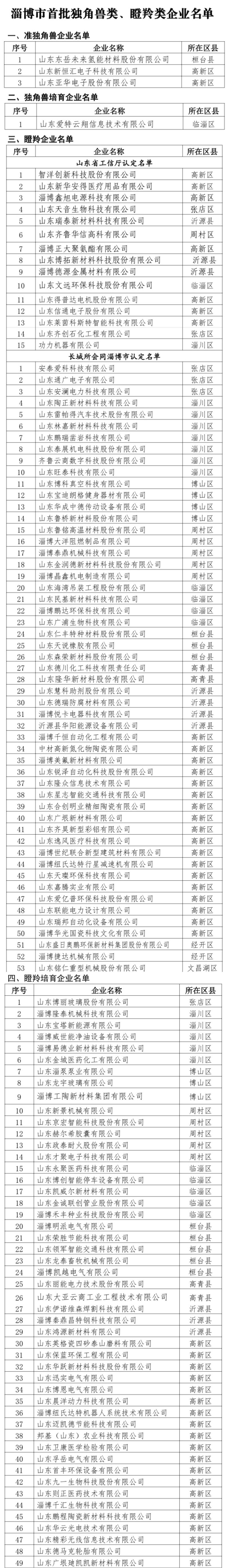 10月18日的淄博新经济大会发布了《淄博市首批独角兽类、瞪羚类企业名单》。