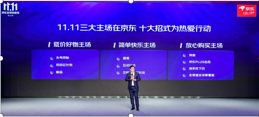 在“2020京东11.11全球热爱季”启动发布会上,京东集团副总裁、京东零售集团平台业务中心负责人韩瑞宣布,“2020京东11.11全球热爱季”将从10月21日正式开启,截至11月11日为期22天,将为消费者带来超2亿件5折商品、超3亿件新品,将通过预售、头号京贴、双百亿计划、新品、直播、互动玩法等“10大招式”,构建“低价好物”、“简单快乐”、“放心购买”三大主场,注定将成为打赢全年消费振兴之战的重要一役。