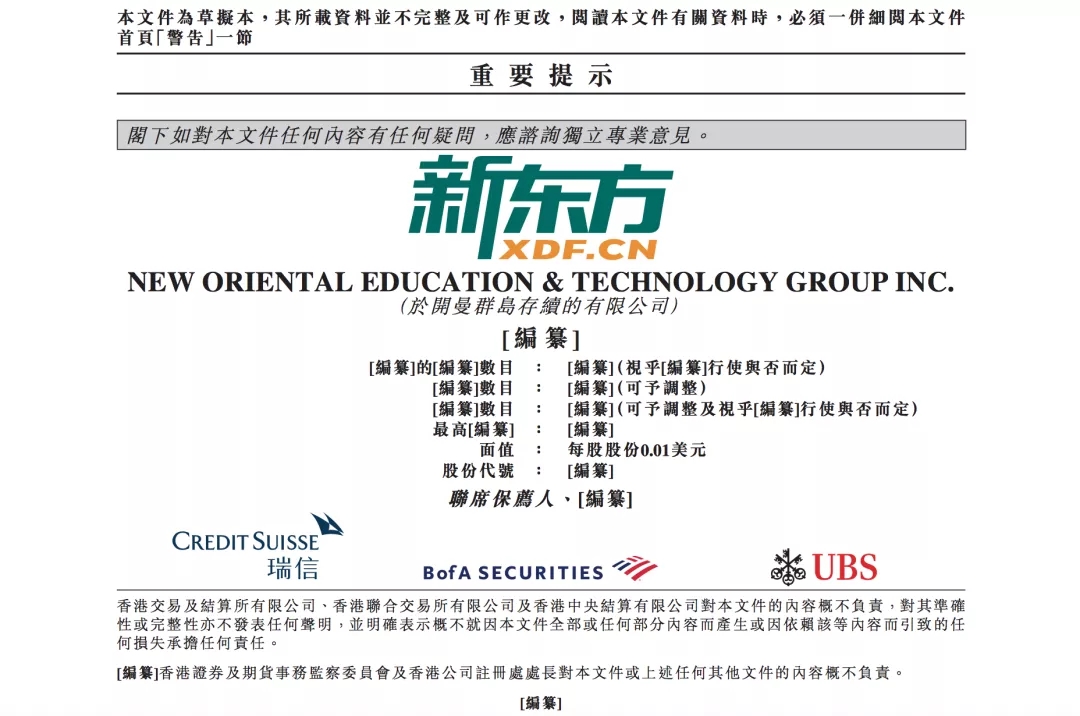 港交所10月23日晚披露文件显示,新东方通过港交所聆讯,即将在香港二次上市,瑞信、BofASecurities、UBS为联合保荐人。