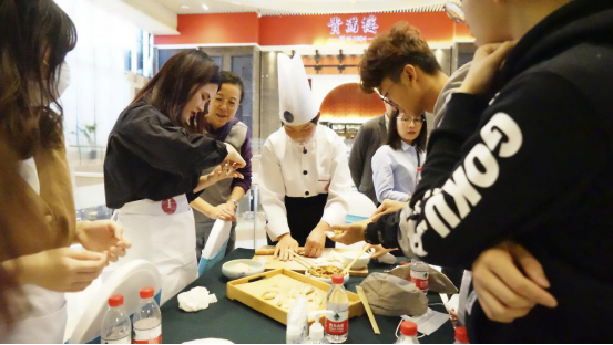 作为活动的承办方之一,侯明敬介绍说,每个环节都暗藏玄机,“吊炉烧饼是一种原生态的展示,北京烤鸭是国粹,大家虽然熟悉,却并不知道溯源在济南章丘,糖醋鲤鱼不仅是一道经典鲁菜,也代表了‘鲤鱼跃龙门’等美好寓意。”而在活动最后,学生们还现场包起了水饺,“水饺在中国文化中意味着团圆,是家人之间的一种情感表达。”