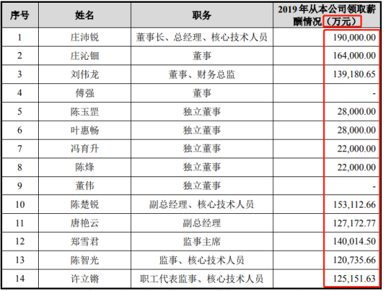 其中最为夸张的是高管总年薪超百亿、董事长年薪高达19亿元之巨。招股书中将董监高2019年薪酬单位“元”写成“万元”,导致公司10多位高管2019年总薪酬达到125亿元之巨,其中董事长年薪更是高达19亿元!