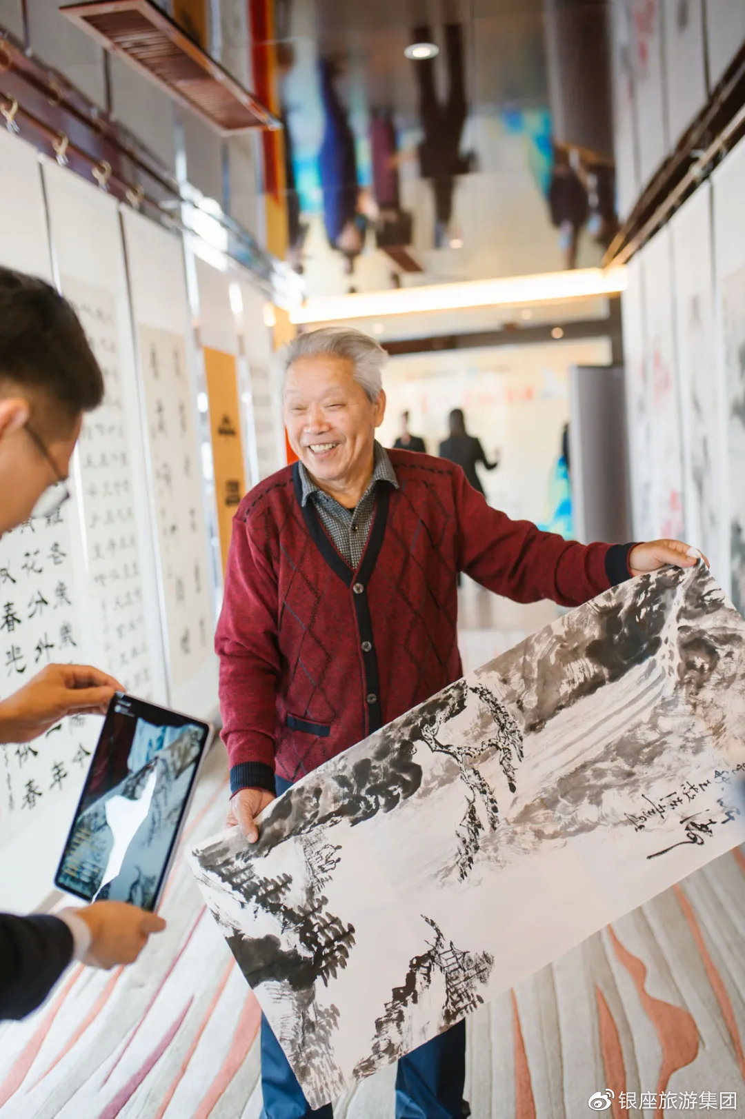 书画现场人头攒动,艺术的气息充满了整个酒廊,笔法苍劲有力,笔尖生花巧夺天工,每个书法展示台都围满了人群,求字求画的人络绎不绝,感叹叔叔阿姨们,虽已经离开工作岗位,但对美好生活的向往和追求让他们充满了青春与活力,这种积极奋进不断学习的精神,值得学习。
