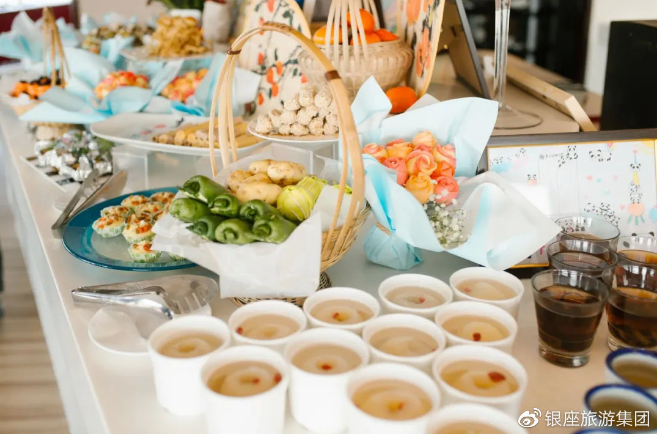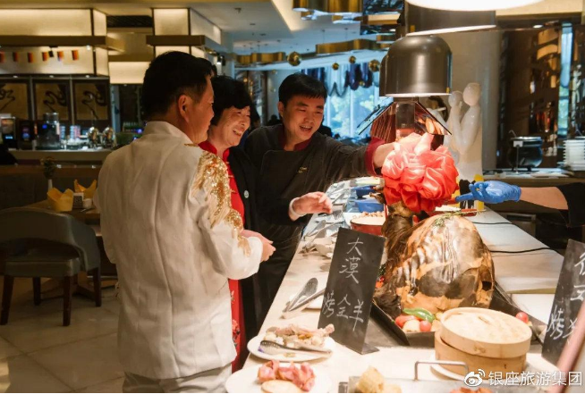 在一楼自助餐厅,特制重阳节蛋糕为老人送去生活里的甜蜜;酒店管理层将带有美好寓意的五彩水饺端送给叔叔阿姨、创意手工煎饼也很是吸睛。“羊”与“阳”谐音,吃羊肉可暖中补虚,益气、开胃健脾等功效,重阳节“开羊”仪式自然必不可少,祝福这些为我们带来满满正能量的活力夕阳红身体康健!饱含心意的安排,让叔叔阿姨们备感银座旅游集团与鲁商福瑞达健康对本次活动的用心。