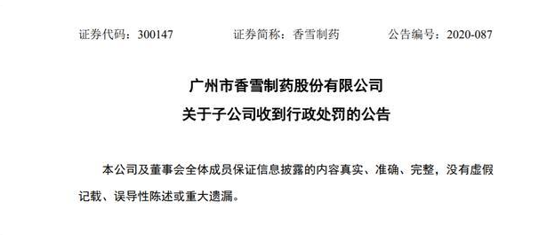 对于本次九极生物剥离失败受罚,香雪制药在公告中表示,该事件对公司的生产经营情况不产生重大影响。如最终九极生物上述工商变更登记不能办理,公司会与广州淡水泉资产管理有限公司另行协商约定,后续公司将根据相关事项的进展情况,及时履行信息披露义务,敬请广大投资者注意投资风险。(本网记者)