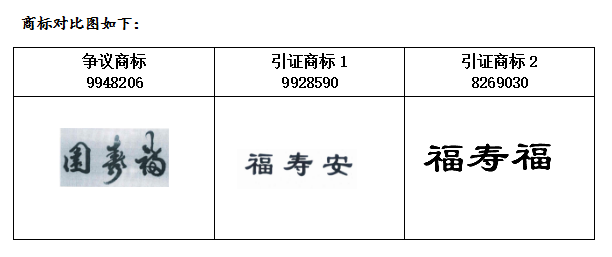 郝梦磊申请宣告“福壽園”商标无效的理由是,争议商标“福壽園”与其第9928590号引证商标1“福寿安”、第8269030号引证商标2“福寿福”在含义、呼叫上无明显区别,构成近似商标,并且,两者同属于殡葬服务行业,争议商标与引证商标1、2共存易造成相关公众的混淆与误认。
