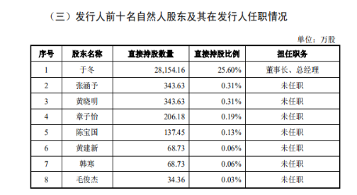 博纳影业的股东配置可谓说是明星云集,招股书显示,在发行人前十名自然人股东中,除了实控人于冬之外,自然人股东只有七人,他们全部为大家熟悉的明星如章子怡、黄晓明、张涵予、韩寒等。据了解,这几位明星股东均是在博纳影业2017年3月增资时进入的。张涵予、黄晓明分别持股0.31%,章子怡持股0.19%,陈宝国持股0.13%,黄建新和韩寒分别持股0.06%,毛俊杰持股0.03%。若博纳影业冲击A股成功,这些明星的身价有望继续提升。