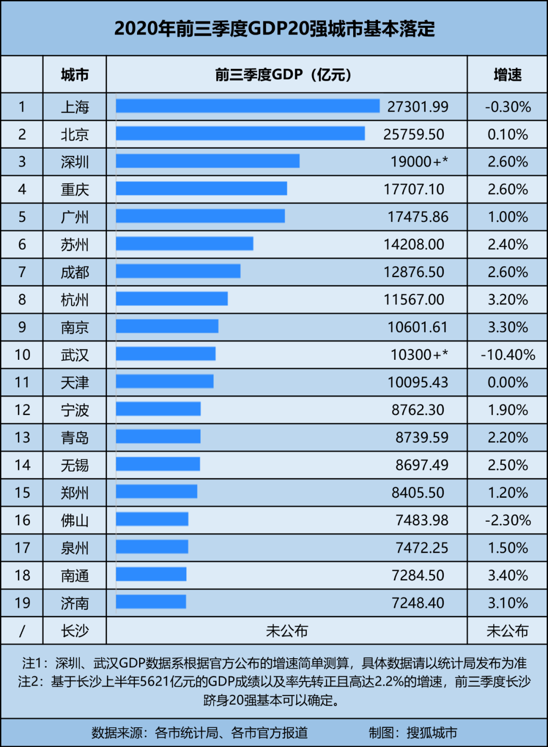 随着国内各主要城市陆续晒出“三季报”,今年前三季度GDP20强城市的座次图逐渐清晰起来。